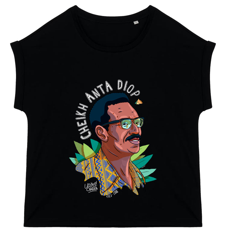 Eine Zeichnung des Künstlers Olivier Bonhomme Material: 100 % ringgesponnene und gekämmte Bio-Baumwolle Schnitt: Locker / Gewicht: 155 G/M² DER REVOLUTIONÄRSHISTORIKER CHEICH ANTA DIOP (1923-1986) – SENEGAL Cheikh Anta Diop ist Historiker, Anthropologe, Ägyptologe und Politiker. Als Student an der Sorbonne-Universität