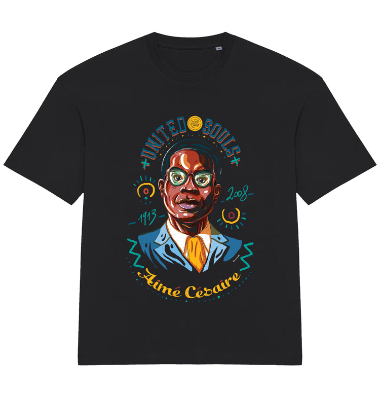 A creation by the artist Olivier Bonhomme Material: 100% organic cotton Cut: oversize / Weight: 220 G/M² THE POET OF NEGRITUDE AIMÉ CÉSAIRE (1913-2008) - MARTINIQUE Born in 1913 in Basse-Pointe, Martinique, Aimé Césaire studied at the Lycée Louis-le-Grand and then at the École Normale Supérieure in Paris. In 1939, he w