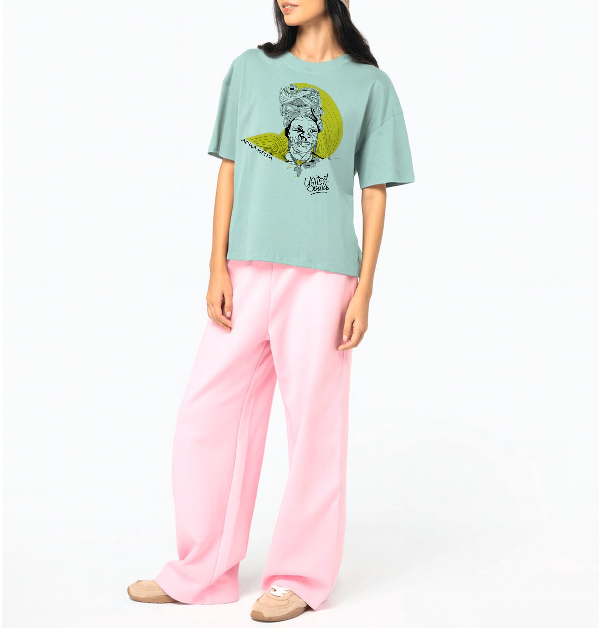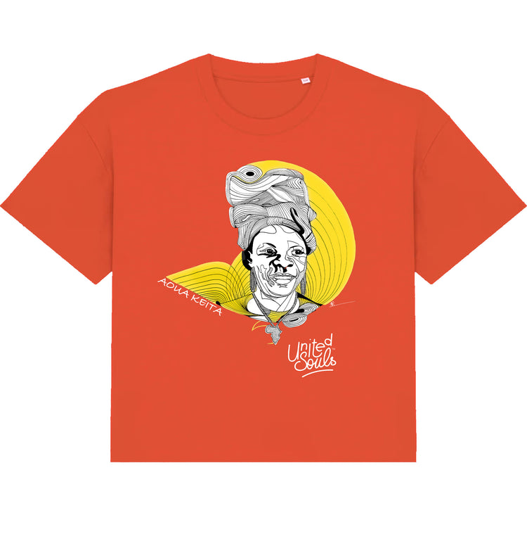 A creation by the artist Afi Kodjobi Tchoukpa Material: 100% organic cotton Cut: oversize / Weight: 180 G/M² PIONEER OF AFRICAN WOMEN'S EMANCIPATION AOUA KEÏTA 1912-1980 - MALI Born in 1912 in Bamako, Aoua Keita was the first midwife in her country. Assigned to Gao in 1931, she secured the opening of a maternity hospit
