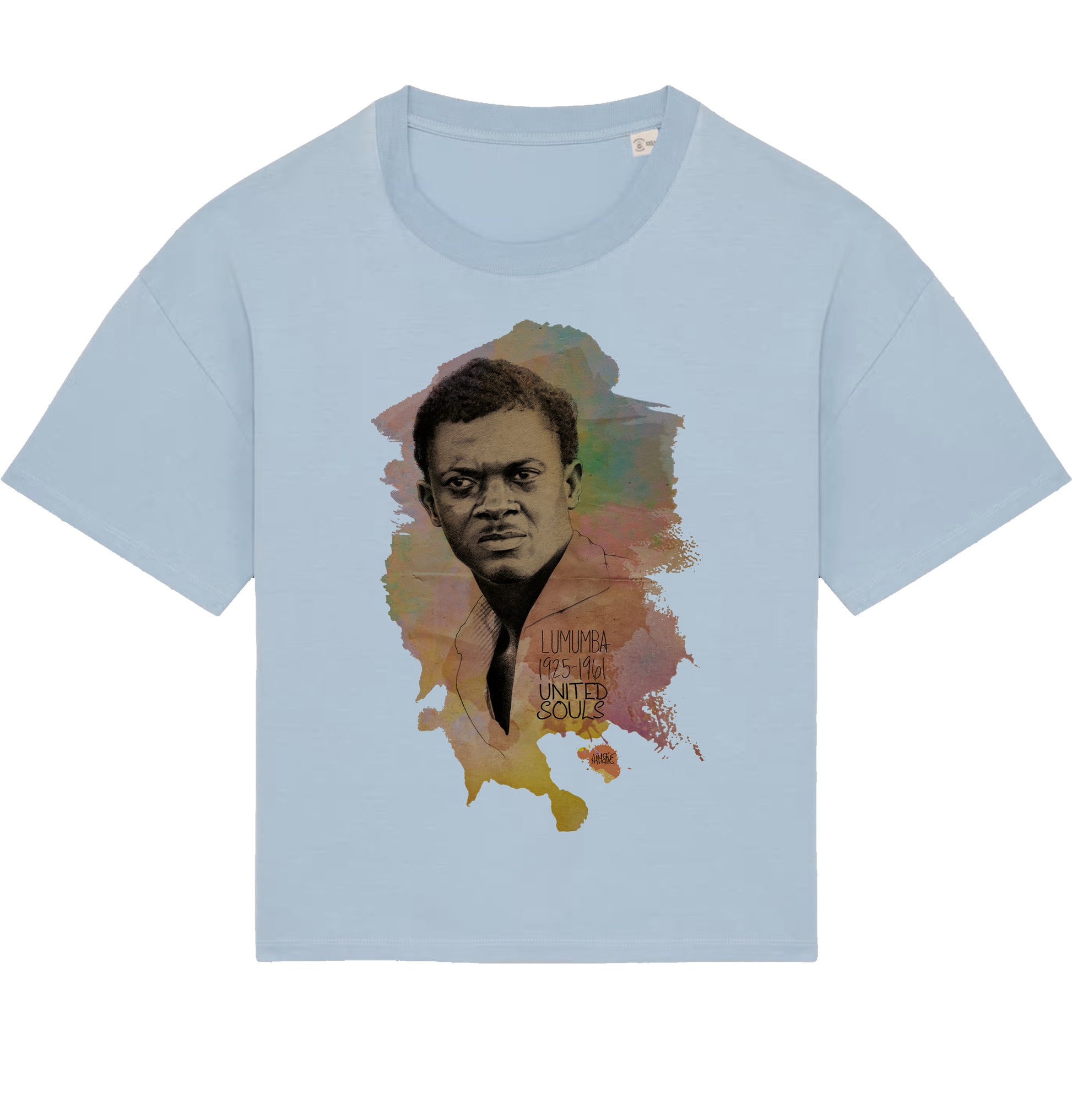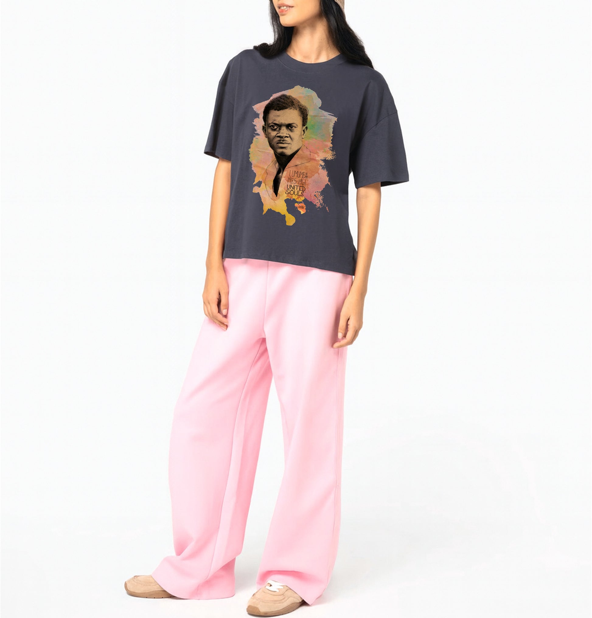 A drawing by the artist Marie-Claire Laffaire Material: 100% organic ring-spun and combed cotton Cut: Oversized / Weight: 180 G/M² THE MARTYR OF INDEPENDENCE PATRICE EMERY LUMUMBA (1925-1961) - DEMOCRATIC REPUBLIC OF CONGO In 2021, United Souls and French-Cameroonian artist Fred Ebami launched "Lumumba Is Back," a caps