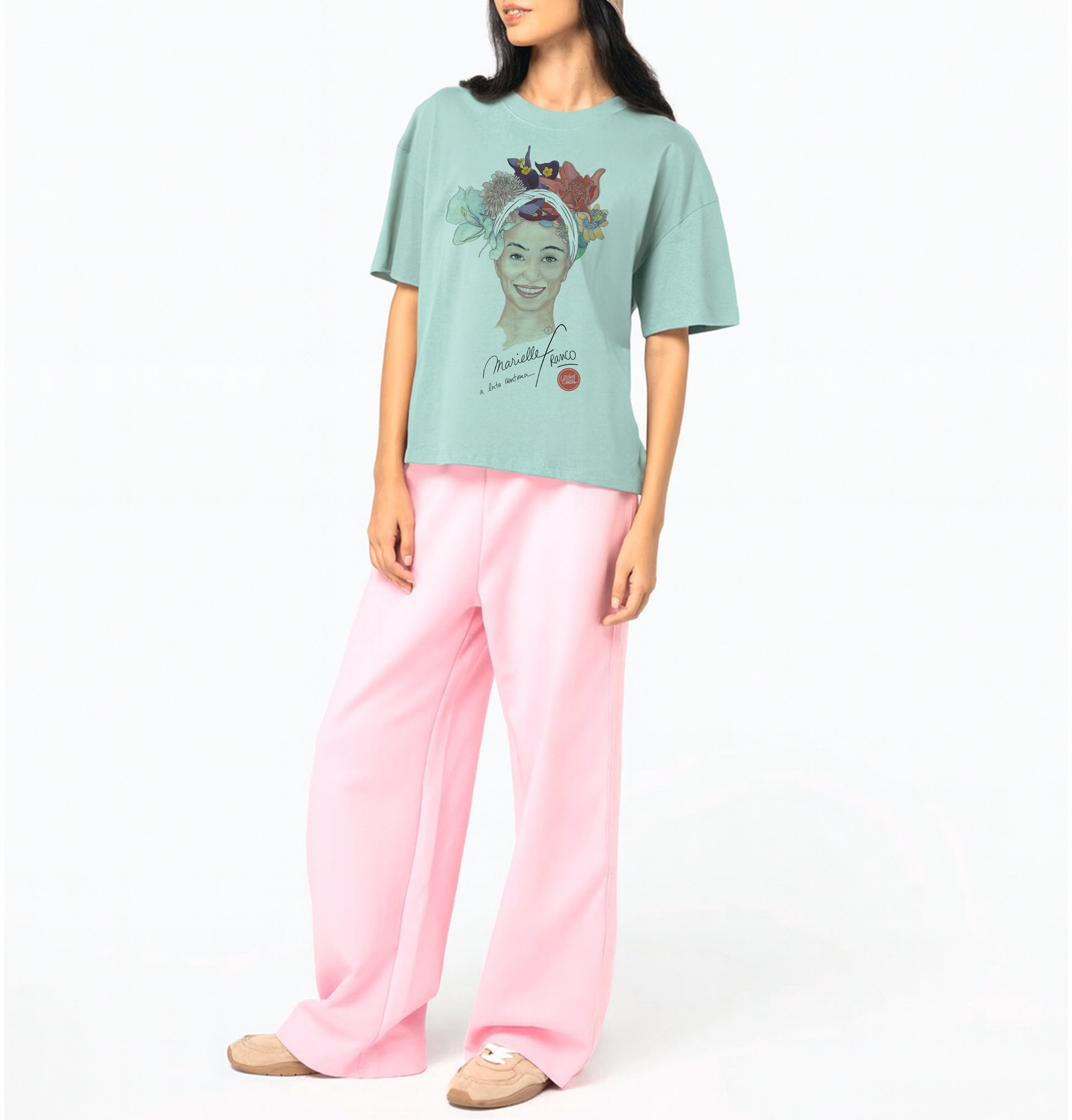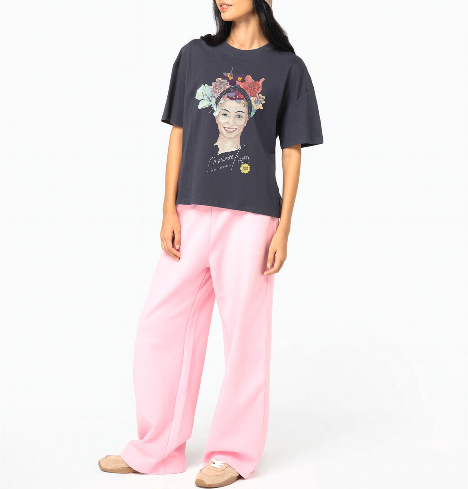 A creation by watercolorist Amandine Szczepaniack Material: 100% organic cotton Cut: oversize / Weight: 180 G/M² THE ICON OF AFRO-BRAZILIAN QUEER STRUGGLE MARIELLE FRANCO (1979-2018) - BRAZIL Marielle Franco is a politician assassinated on March 14, 2018, in Rio de Janeiro. Born in a favela, she studied sociology and p