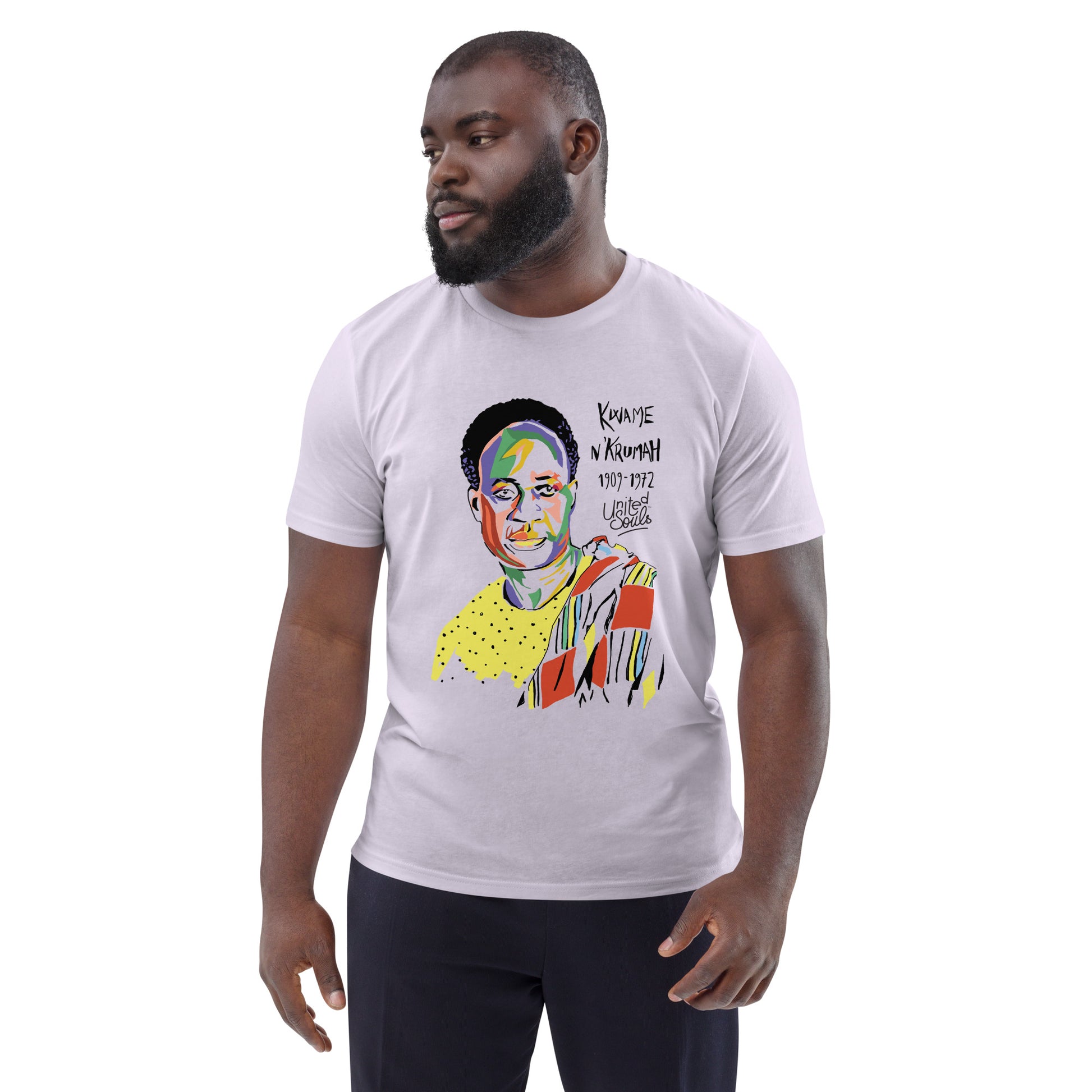 A creation by artist Joy Hanoun Material: 100% organic cotton Cut: Normal / Weight: 180 G/M² THE THEORIST OF THE PIONEER OF PAN-AFRICANISM AND AFRICAN INDEPENDENCE KWAME NKRUMAH 1909-1972 GHANA Kwame Nkrumah, the iconic leader of Ghana's struggle for independence and a pan-African visionary, left his mark on African an