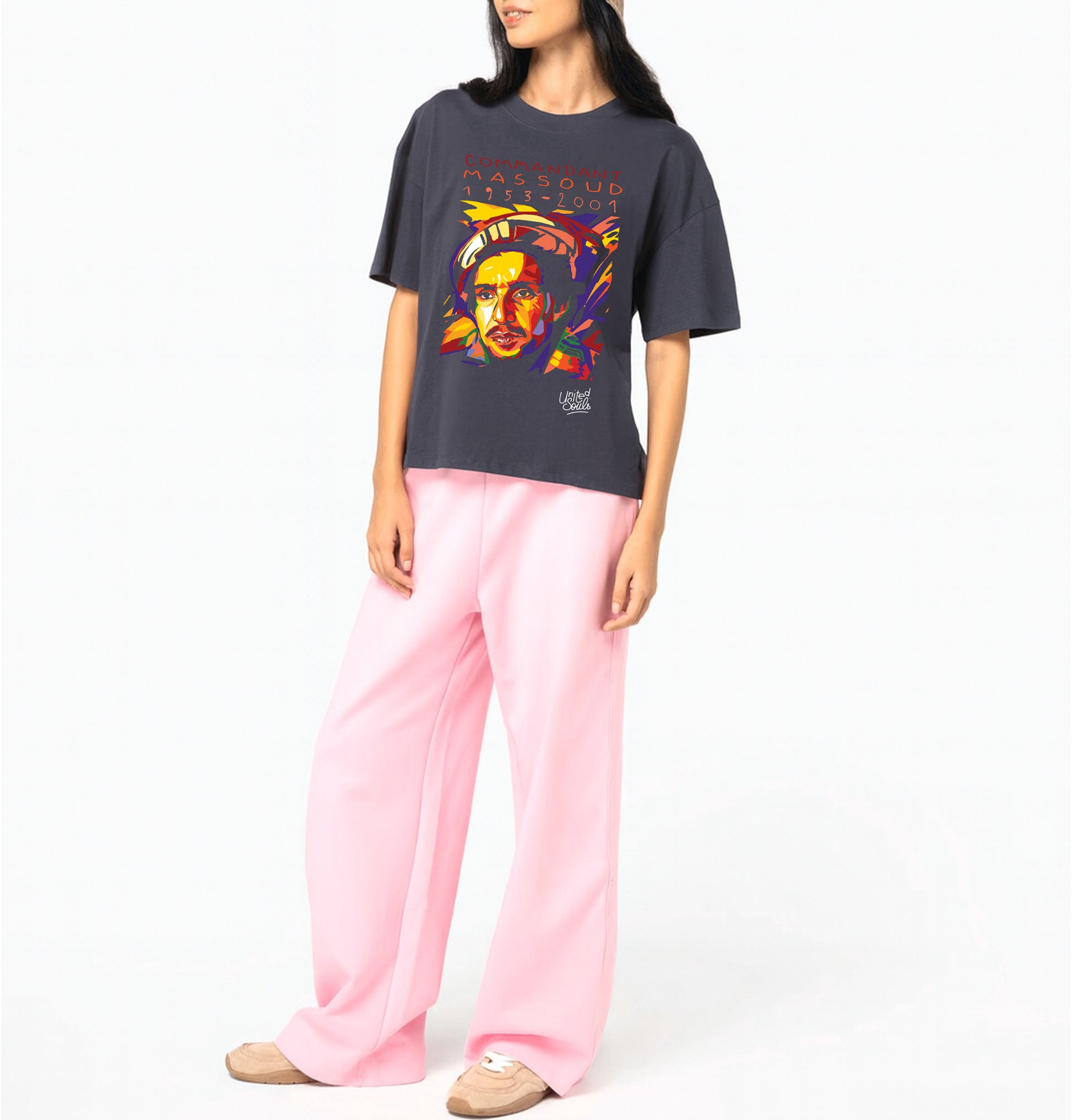Une création de l'artiste Joy Hanoun Matière : 100% coton biologique Coupe : oversize / Grammage : 180 G/M² LE LION DU PANSHIR AHMED SHAH MASSOUD (1953-2001) - AFGHANISTAN Ahmad Shah Massoud, né le 2 septembre 1953 en Afghanistan, était un commandant militaire et homme politique afghan. Surnommé le "Lion du Panchir", i