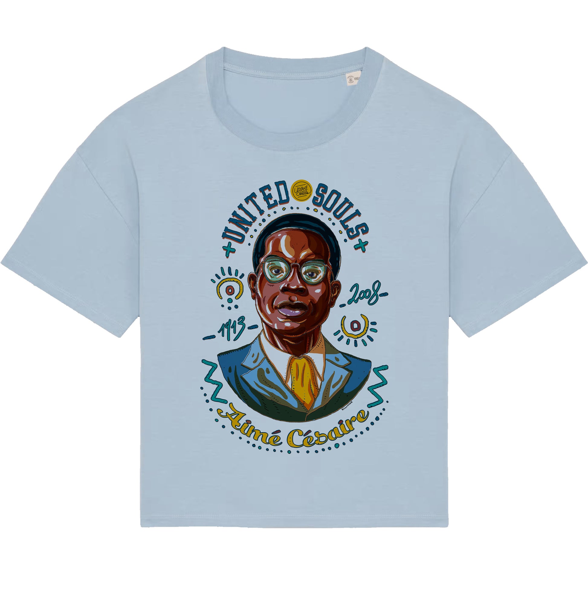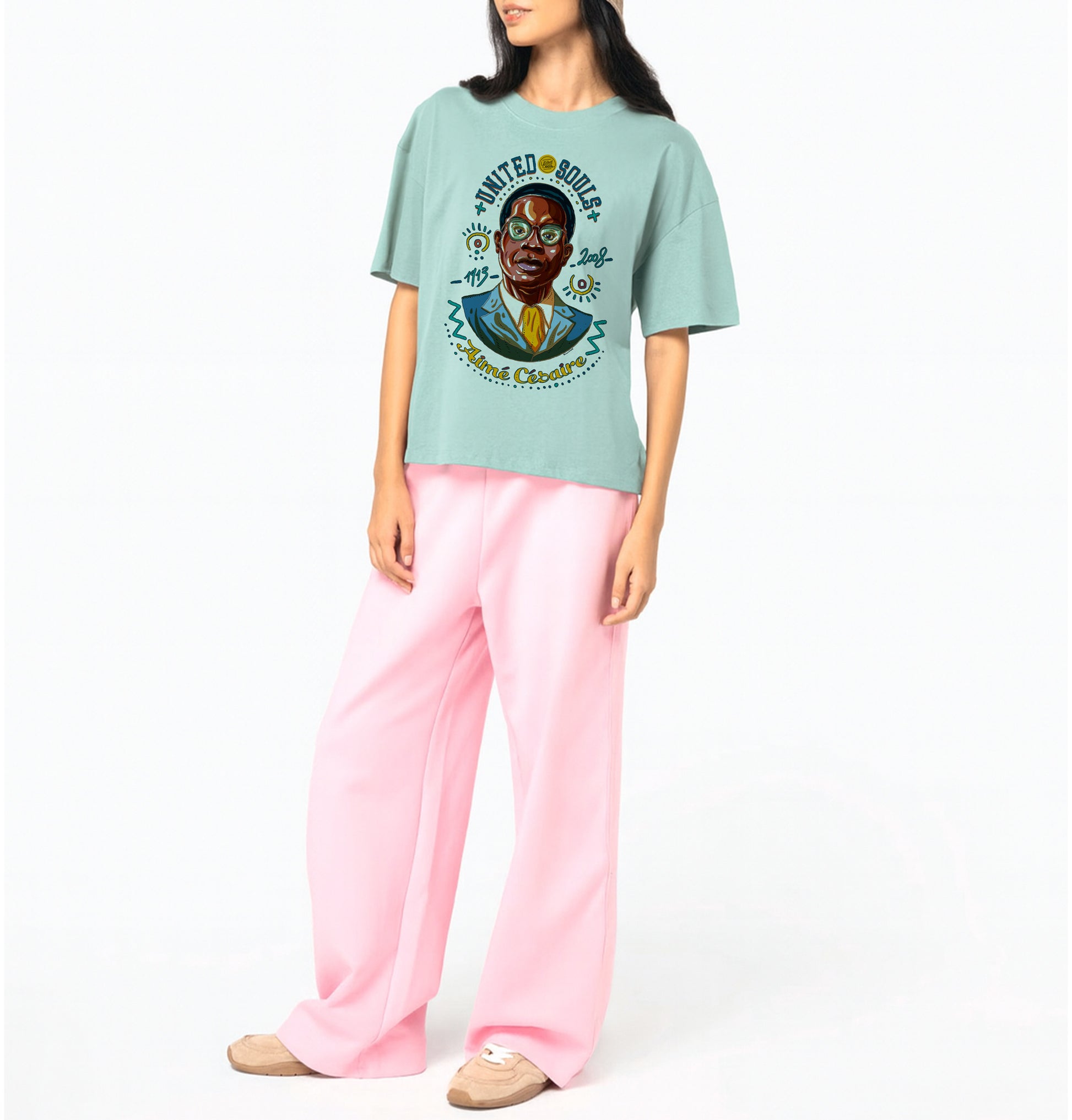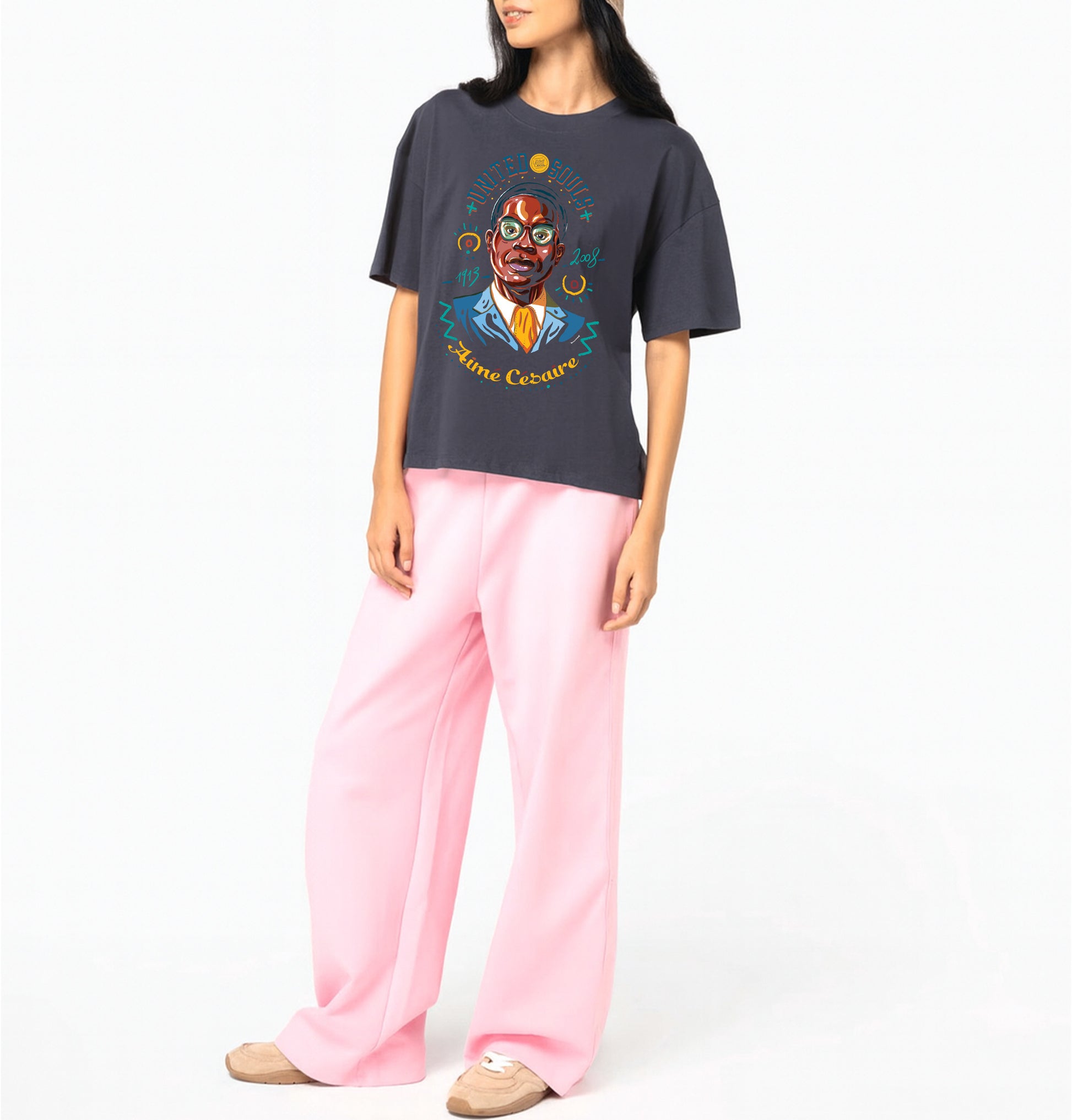 Une création de l'artiste Olivier Bonhomme Matière : 100% coton biologique Coupe : oversize / Grammage : 180 G/M² LE POÈTE DE LA NÉGRITUDE AIMÉ CÉSAIRE (1913-2008) - MARTINIQUE Né en 1913 à Basse-Pointe, Martinique, Aimé Césaire étudie au Lycée Louis-le-Grand puis à l’Ecole Normale Supérieure à Paris. En 1939, il écrit