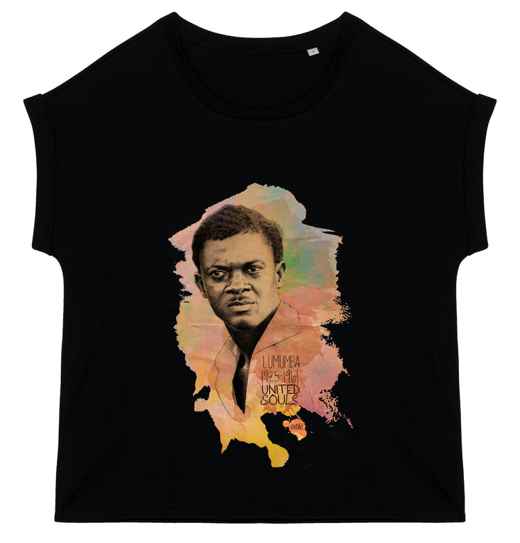 Un dessin de l'artiste Marie-Claire Laffaire Matière : 100% coton biologique filé et peigné Coupe : Loose / Grammage : 155 G/M² LE MARTYR DES INDEPENDANCES PATRICE EMERY LUMUMBA (1925-1961) - RÉPUBLIQUE DÉMOCRATIQUE DU CONGO Né le 2 juillet 1925 à Onalua, Patrice Emery Lumumba accède au rang des« évolués » dans un Cong