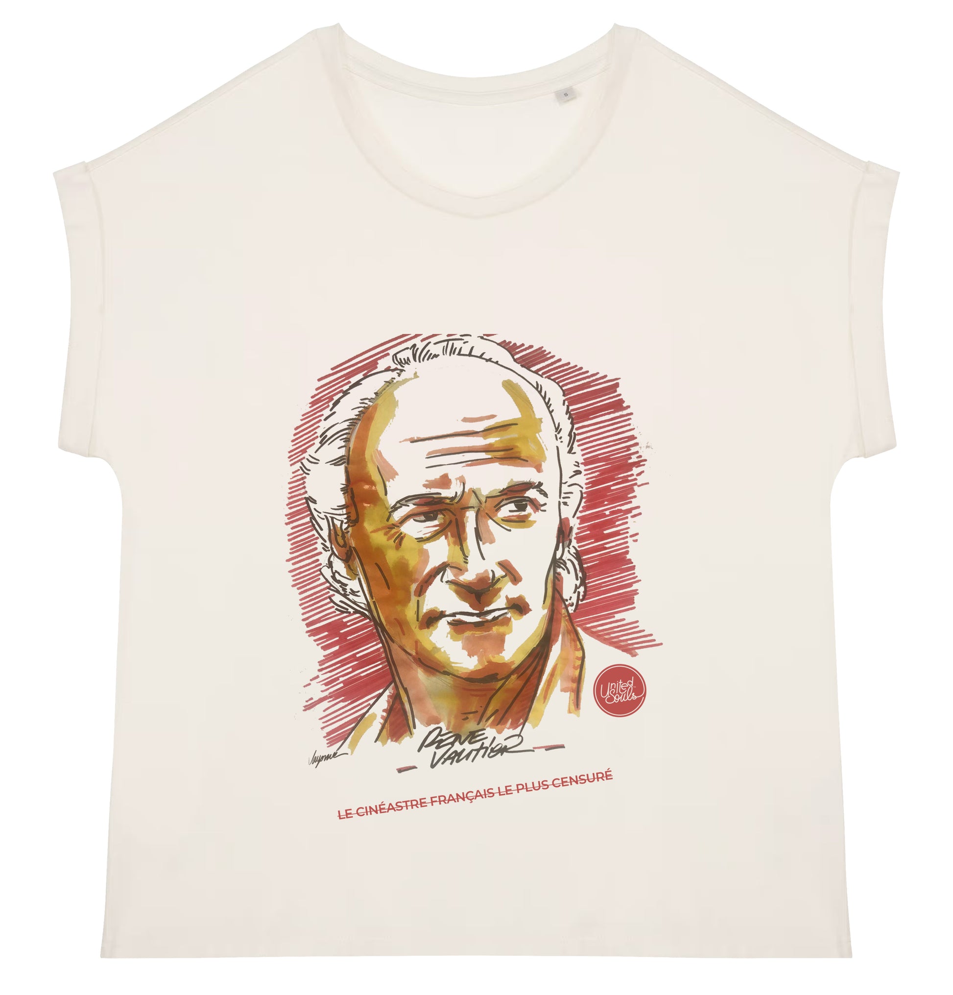 Un dessin de l'artiste Jay One Matière : 100% coton biologique filé et peigné Coupe : Loose / Grammage : 155 G/M² LE CINÉASTE DE COMBAT René Vautier (1928-2015) - France Réalisateur et cinéaste breton né en 1928 d’un père ouvrier et d’une mère institutrice, René Vautier rejoint la Résistance à quinze ans et reçoit plus