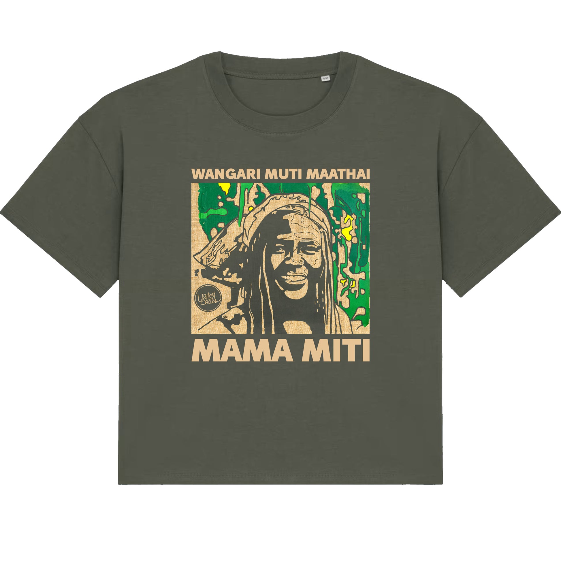 Une création de l'artiste Afi Kodjobi Tchoukpa Matière : 100% coton biologique Coupe : oversize / Grammage : 180 G/M² LA MILITANTE AFRO-FEMINISTE ET ÉCOLOGISTE WANGARI MUTI MAATHAI (1940-2011) - KENYA Wangari Muta Maathai, éminente militante afro-féministe et écologique kényane, incarne la fusion parfaite entre l'activ